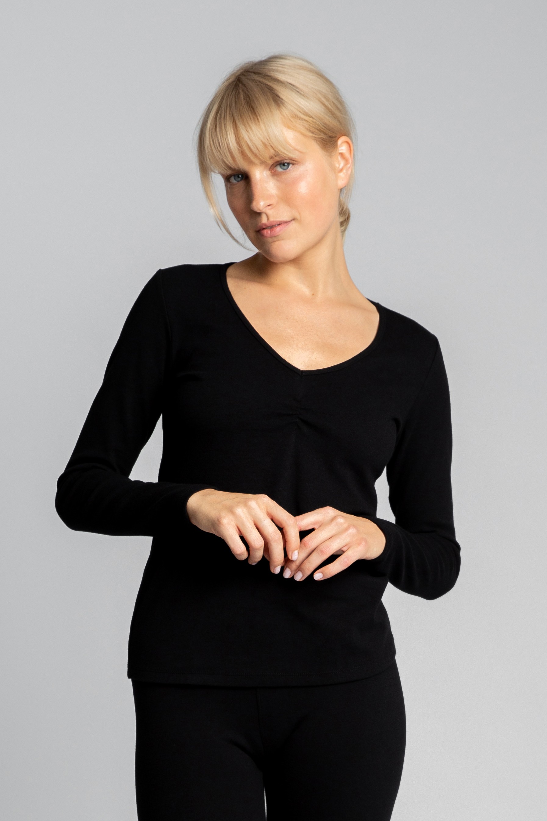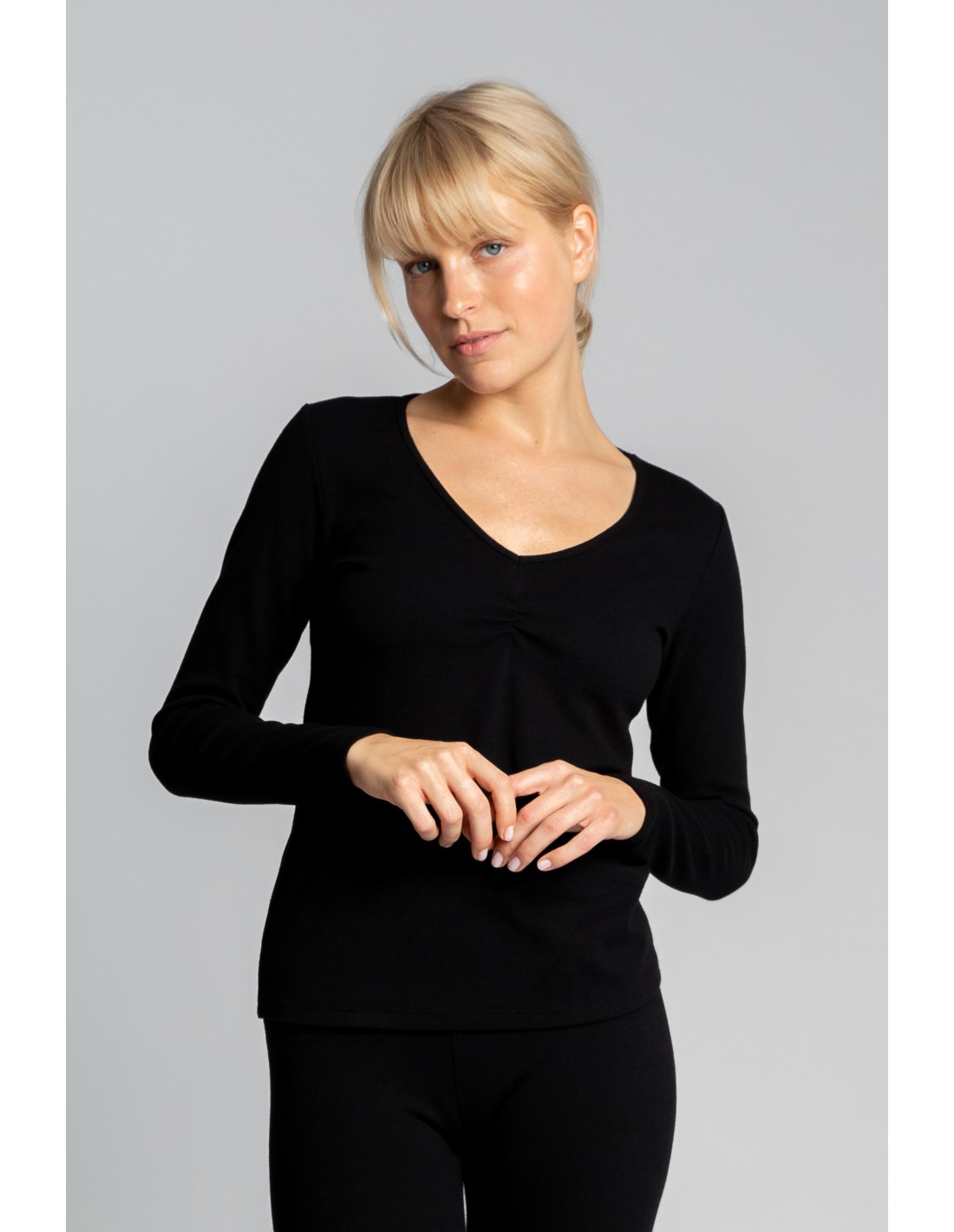 • dekolt V z delikatnym marszczeniem