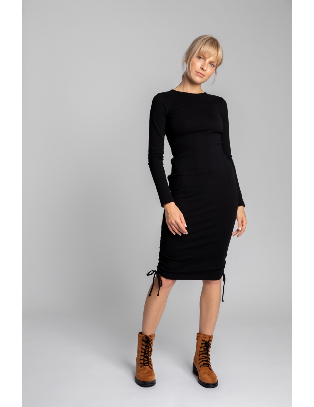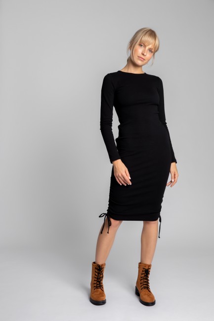 Ach te dylematy! Gdybyśmy ich nie miały, życie byłoby nudne. Długa, czy krótka? Sukienka może dopasować się do Twoich oczekiwań, w zależności od dnia i nastroju. Dzięki ściąganym trokom po obu bokach, naszą sukienkę możesz nosić dowolnie - długość midi, do kolan, czy mini? Elastyczny prążkowany materiał 97% bawełna dopasowuje się do każdej sylwetki, nie krępuje ruchów i nie utrudnia codziennych czynności, dlatego możesz nosić ją ciągle. Wyprodukowano w Polsce.