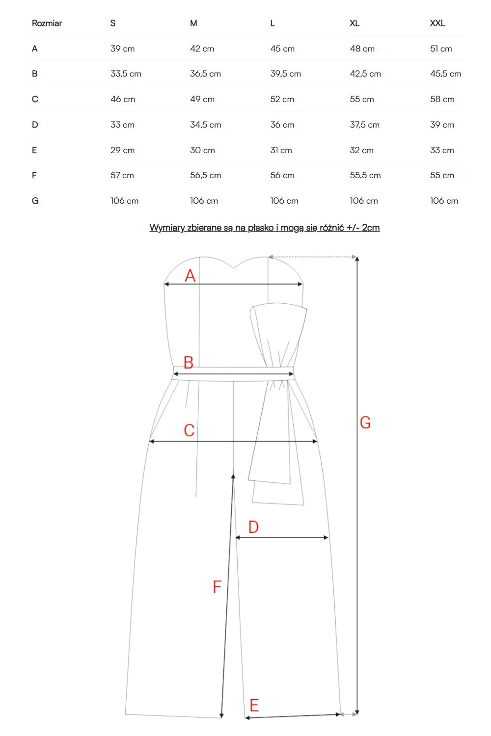 Niesamowicie stylowy, oryginalny oraz pełen szyku - taki właśnie jest czarny elegancki kombinezon gorsetowy. To model, dzięki któremu olśnisz wszystkich na bankiecie, przyjęciu weselu czy każdej innej uroczystości. Nie ma znaczenia czy jesteś bardzo drobna, czy chciałabyś pozbyć się kilku kilogramów, ten krój sprawdzi się u Ciebie bardzo dobrze. Gorsetowa góra pięknie podkreśla biust oraz talię, natomiast z pomocą szerokich nogawek możesz zatuszować pewne niedoskonałości sylwetki i przywrócić optymalne proporcje ciała. Odsłonięte ramiona pozwalają wyeksponować biżuterię, dlatego postaw na długie kolczyki lub delikatny naszyjnik. Kokarda na przodzie jest już tak dużą ozdobą, że im mniej dodatków, tym lepiej. Dobierz do całości sandałki lub klapki na obcasie, klasyczną kopertówkę lub małą torebkę do ręki i kreacja gotowa. Wyprodukowaliśmy go w Polsce, jakość i perfekcja wykonania zagwarantowana!