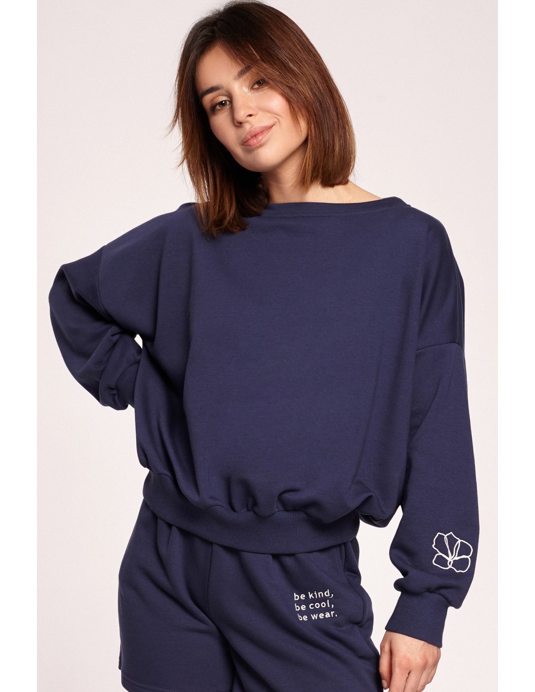 Jeżeli komfort, wygoda i kobiecość idą w parze to produkt doskonały! Otóż, ta bluza zapewni Ci to wszystko w stu procentach. Niebieska luźna bluza z odkrytymi plecami to odzwierciedlenie sportowej elegancji. Głęboki dekolt na plecach połączony paskiem jest bardzo zmysłowym akcentem, daje również pewność, że bluza nie będzie się zsuwać na ramiona - komfort użytkowania potwierdzony. Gładka bluza jest bardzo ponadczasowa i uniwersalna, co czyni ją wspaniałą bazą do kreowania wielu stylizacji. Wykorzystasz ją na co dzień, spotkanie z przyjaciółmi czy nawet randkę. Odpowiednio wystylizowana daje mnóstwo możliwości. Haft w kształcie kwiatka dodatkowo dodaje jej nieco wiosennego i romantycznego uroku. Produkt został wykonany w Polsce.