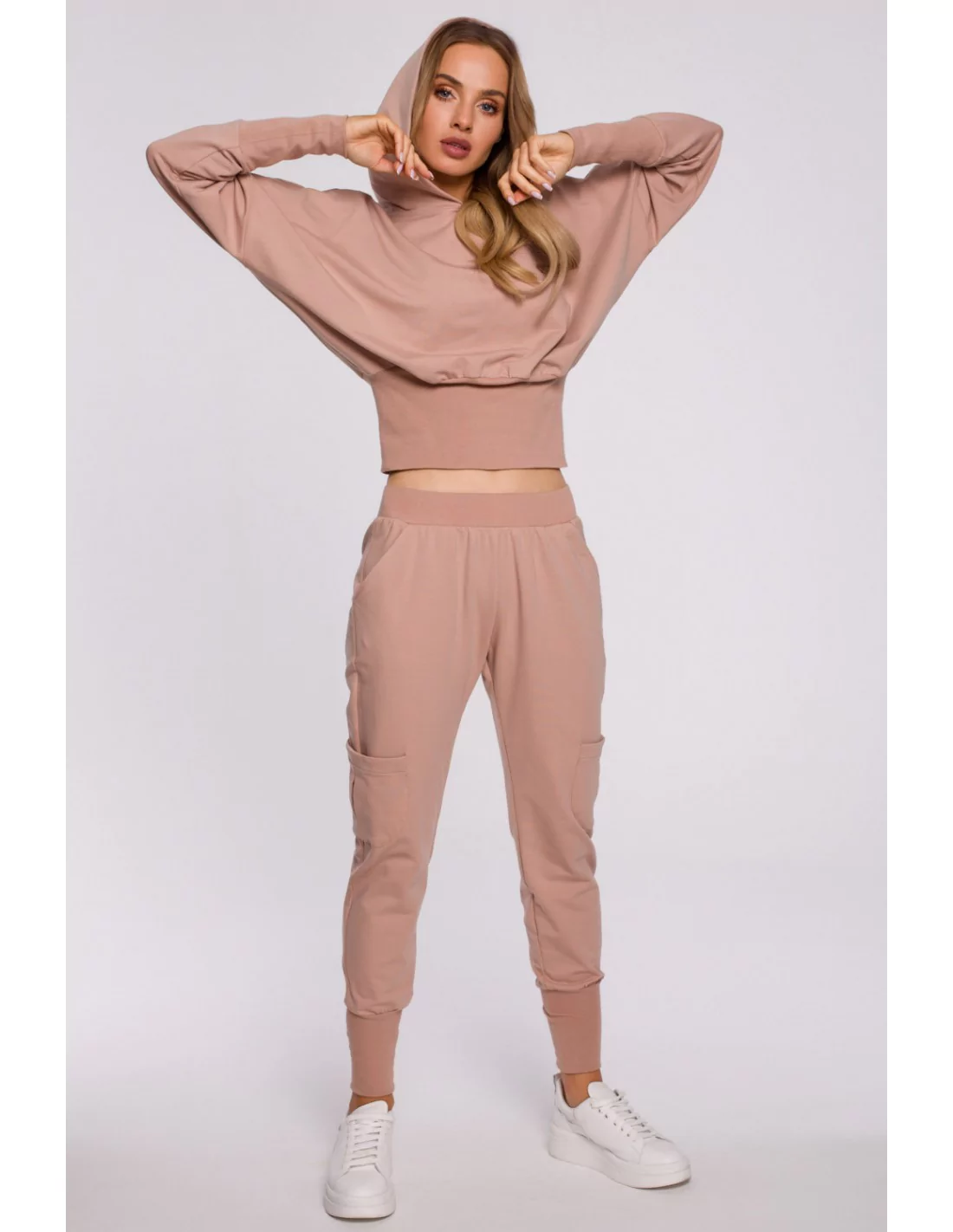 Czekoladowe spodnie dresowe typu cargo z kieszeniami zewnętrznymi na linii ud to świetny dodatek do stylizacji zarówno tych domowych, sportowych, jak i miejskich. Dzięki szerokiej elastycznej gumie w pasie potrafią dopasować się do każdej sylwetki, podkreślając jej kobiece kształty. Dobrze prezentują się z dopasowaną górą, a także z bluzkami i bluzami o oversizowym kroju. Mamy dla Ciebie również total look - zestaw z bluzą zakończoną wysokim ściągaczem, jak i nogawki spodni, dostępną w naszej ofercie. Dodaj do tego sportowe buty na podeszwie z bieżnikiem. Gotowa na spacer lub trekking? Spodnie wyprodukowane w Polsce.