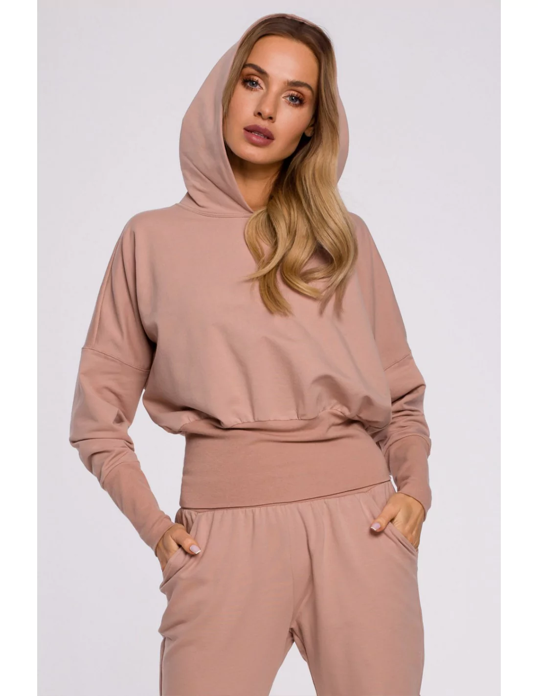 CM5883 Bluza z kapturem i wysokim ściągaczem - mocca