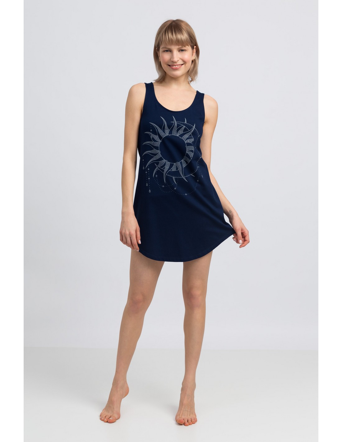 To nie koszula nocna, ale młodzieżowa koszulka do spania i „po domu" z figlarnie wykończonym dołem i odkrytymi ramionami à la tank top, czy bokserka. Do tego wymowny nadruk księżyc i słońce, które będą stały na straży zdrowego, spokojnego snu, a gdy wstaniesz rano... ta bawełniana koszulka to też opcja na domowy strój, w którym wypijesz kawę, ogarniesz mieszkanie i zrobisz selfie w lustrze. Jest wygodna, bo niedopasowana, a materiał pozwala skórze oddychać i przyjemnie ją otula. Inspirujący nadruk ukazuje równowagę dnia i nocy, tak więc aktywności i wypoczynku, które należy balansować - czyż ta koszulka nie jest wyjątkowa? Wyprodukowano w Polsce.