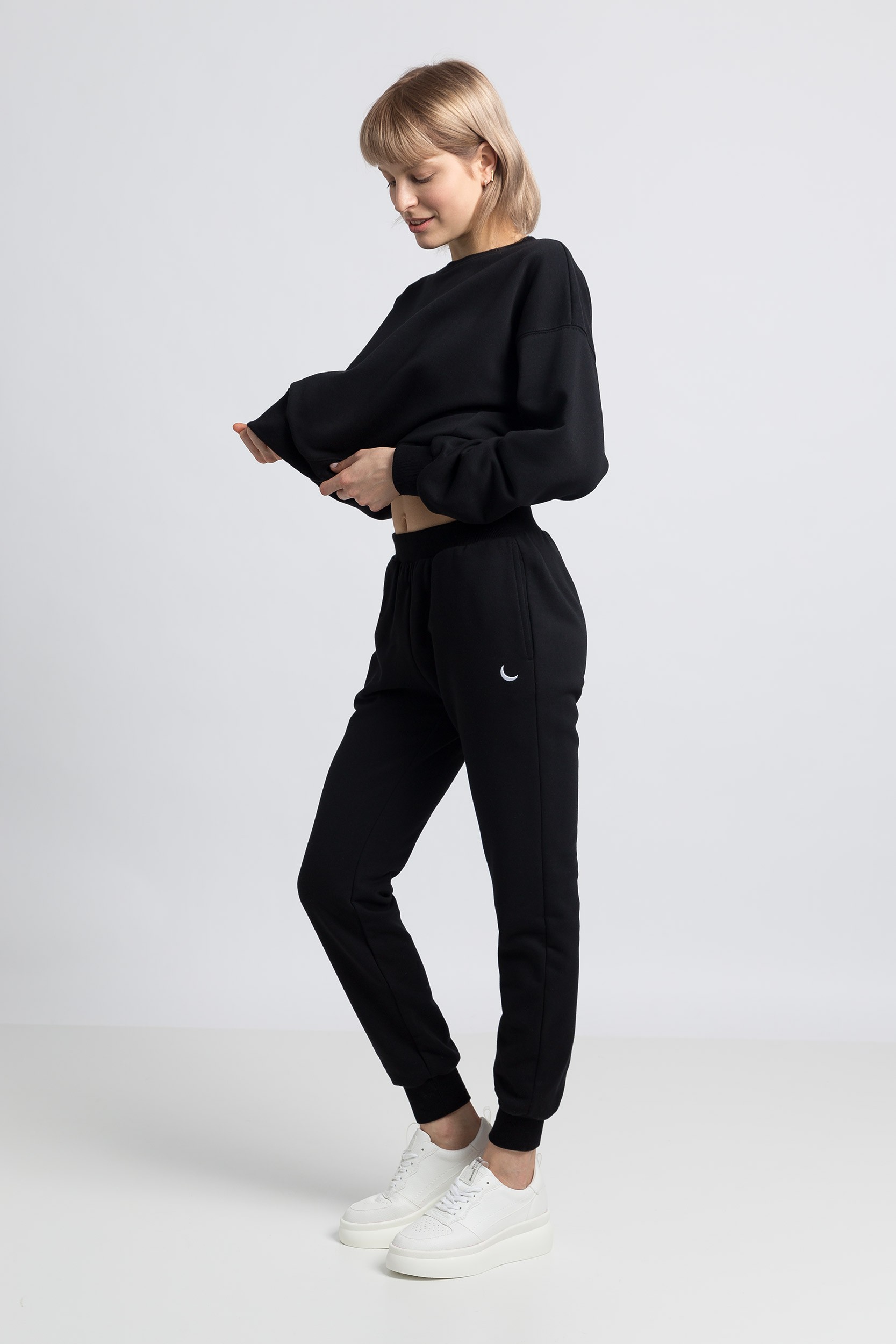 Za dnia promienna i pełna wigoru, wieczorem spokojna i zrelaksowana. Twój strój - może odzwierciedlać Twoje samopoczucie, dlatego stworzyliśmy spodnie dresowe jasne i ciemne - z haftem księżyca i słońca odpowiadającym różnym porom dnia i Twoim nastrojom. Spodnie od dresu z takim haftem, o cudownym kroju sprzyjającym podkreśleniu walorów sylwetki, ze zwężonymi nogawkami zakończonymi wysokimi ściągaczami, elastyczne w pasie i z kieszeniami to propozycja na każdy dzień i (nie)pogodę. Dzianina bawełniana dodatkowo uszlachetniona enzymem zapewnia komfort w noszeniu zarówno w domu, jak i na spacerze, czy w trakcie uprawiania sportu oraz trwałość po wielokrotnym praniu i noszeniu. Takie spodnie dresowe to skarb. Wyprodukowano w Polsce.