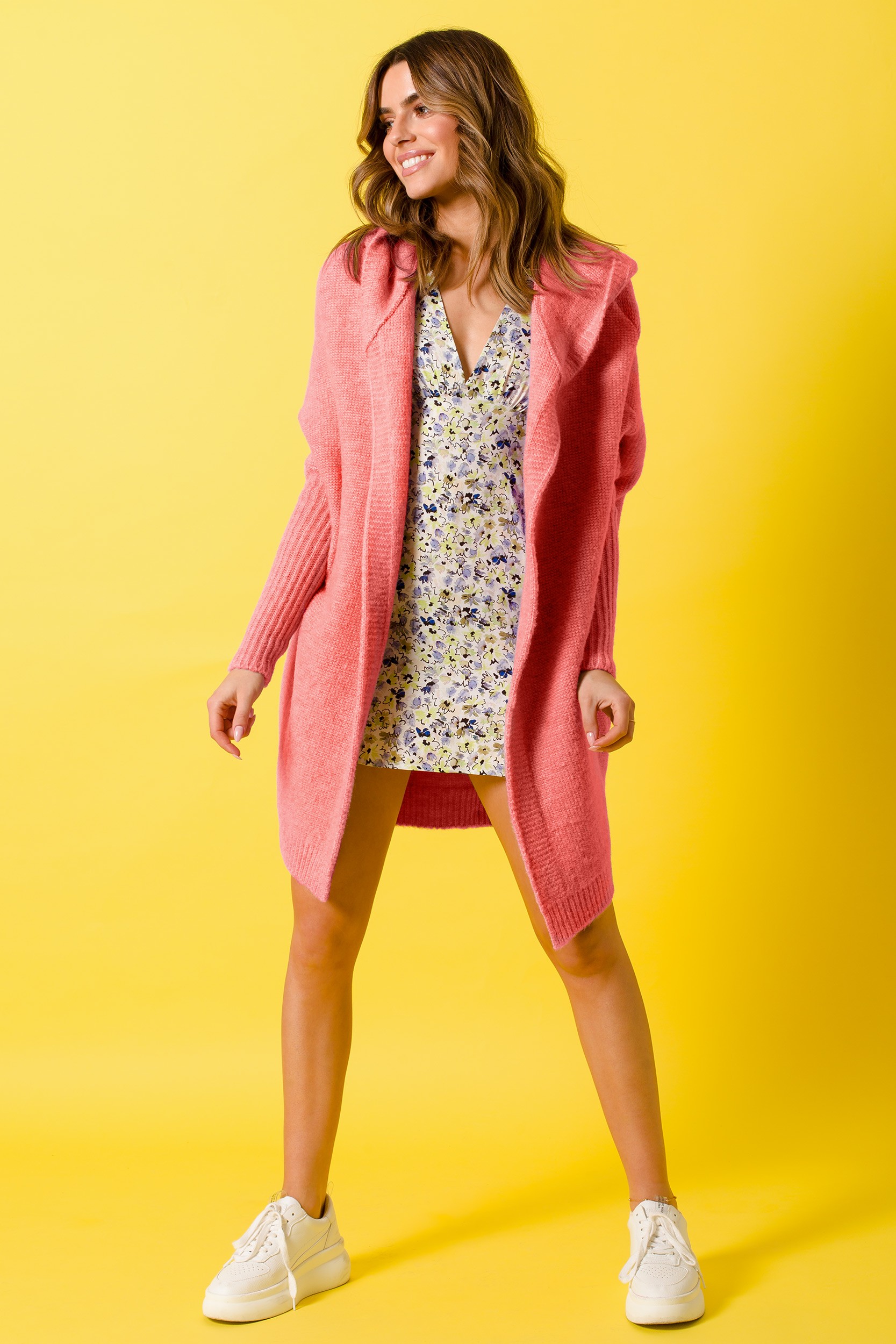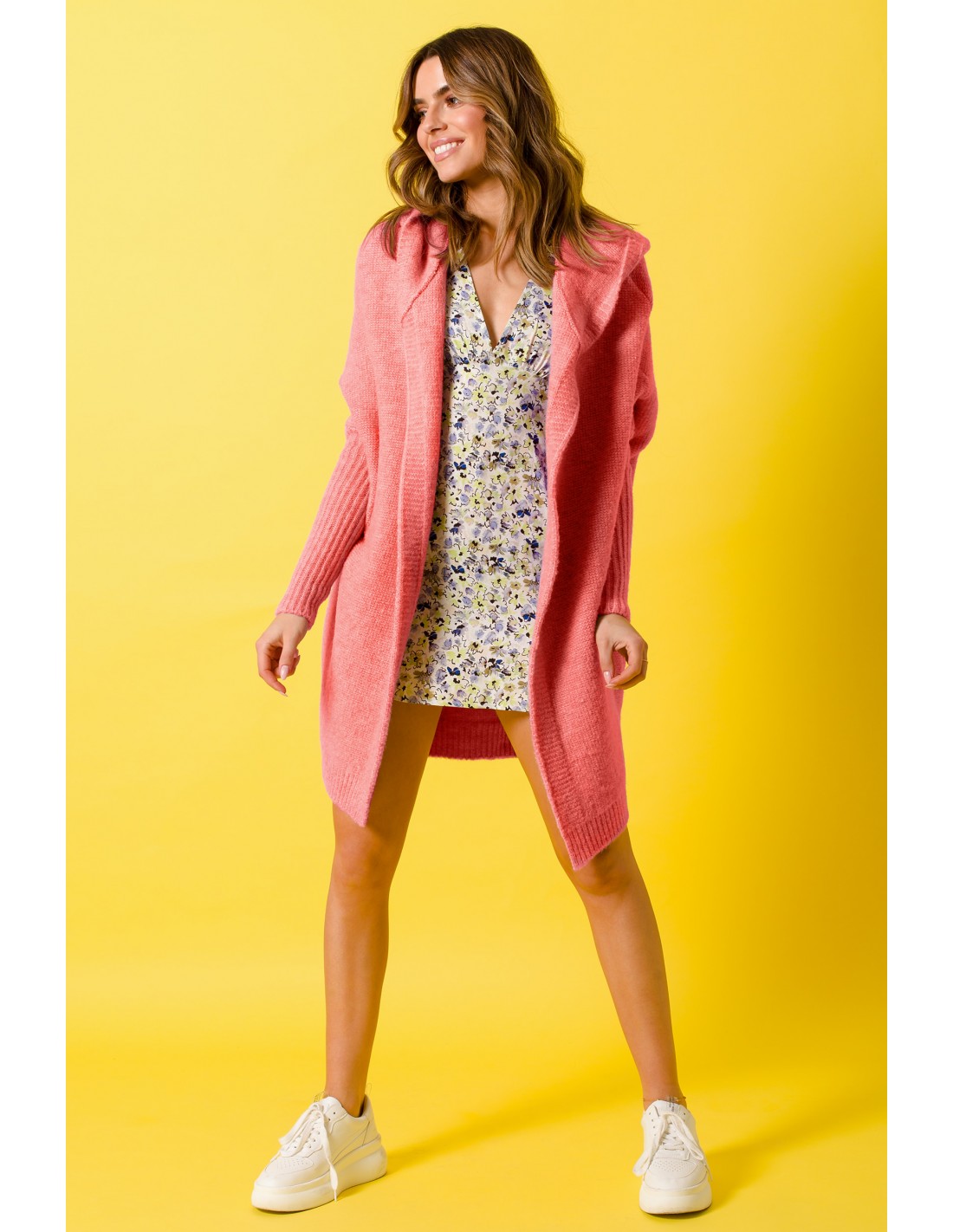 CM5972 Niezapinany kardigan z kapturem - arbuzowy