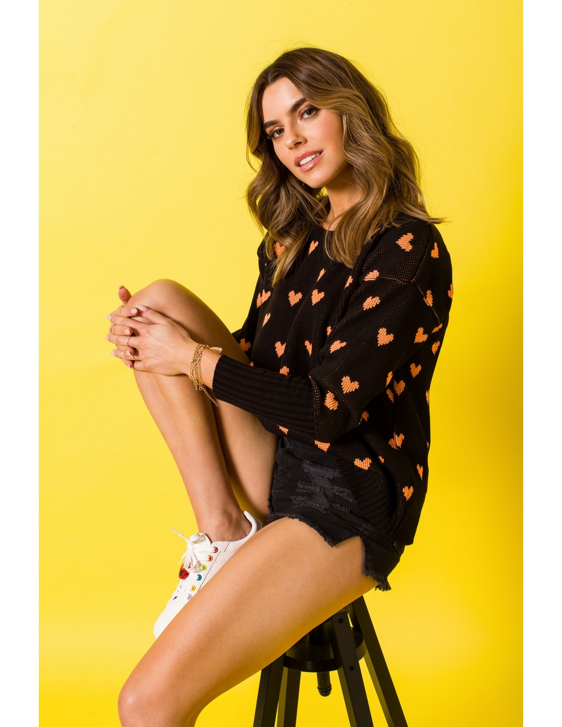 Sweter w serduszka - czarny