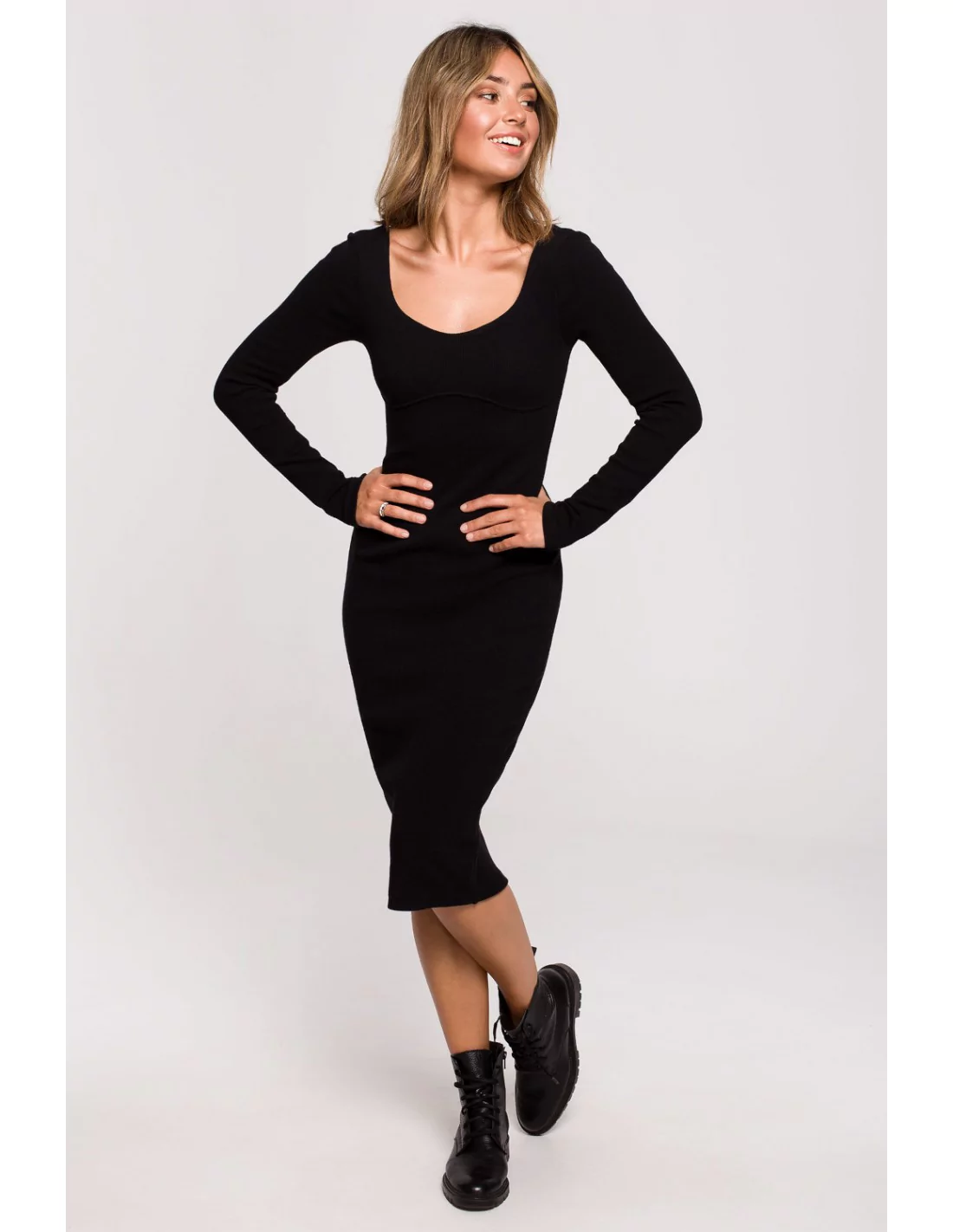 CM6204 Sukienka midi z dzianiny prążkowanej - czarna