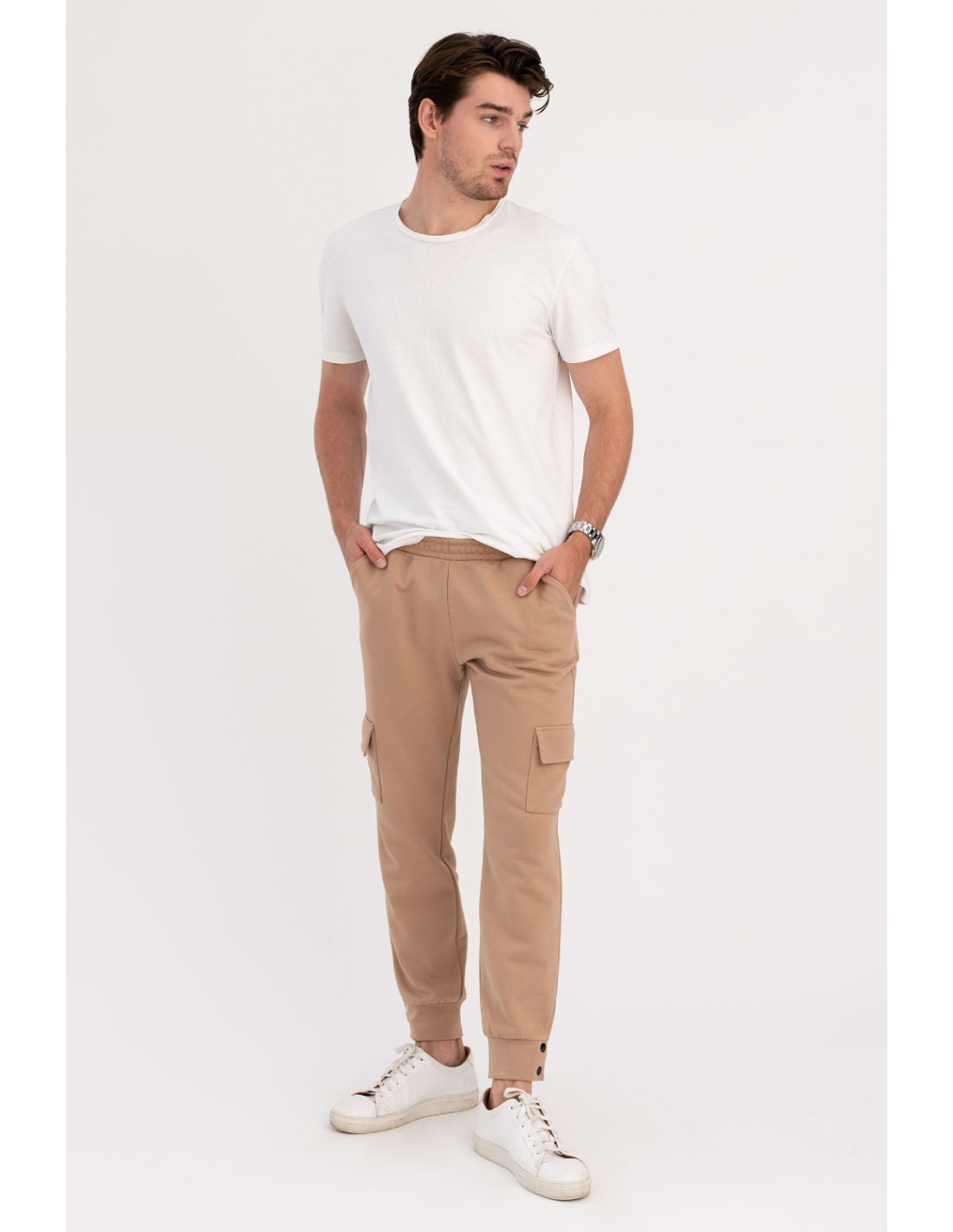 CM6217 Męskie spodnie cargo z kieszeniami i napkami - orzechowe