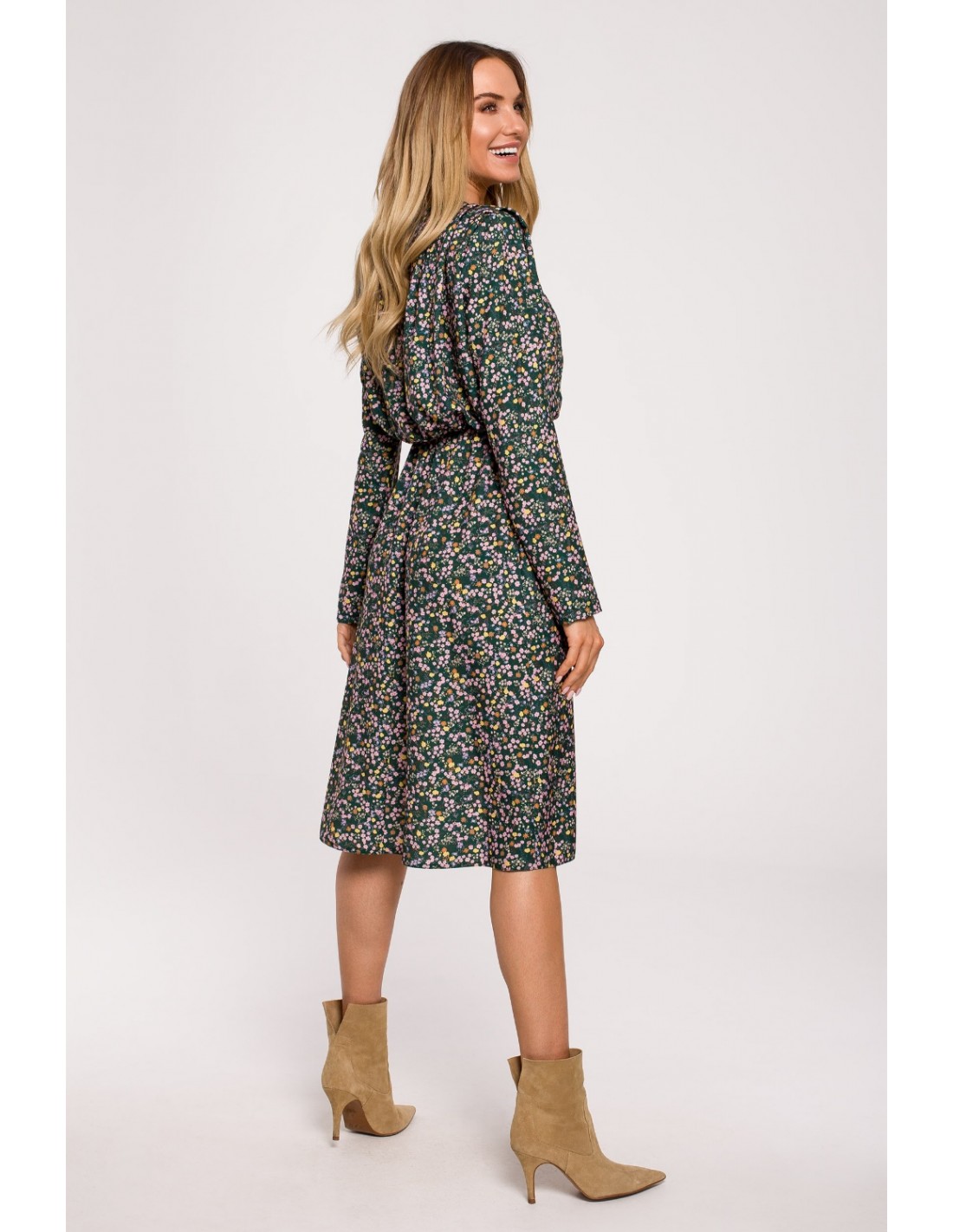 CM6224 Sukienka kwiecista z długimi rękawami i rozcięciem - model 2