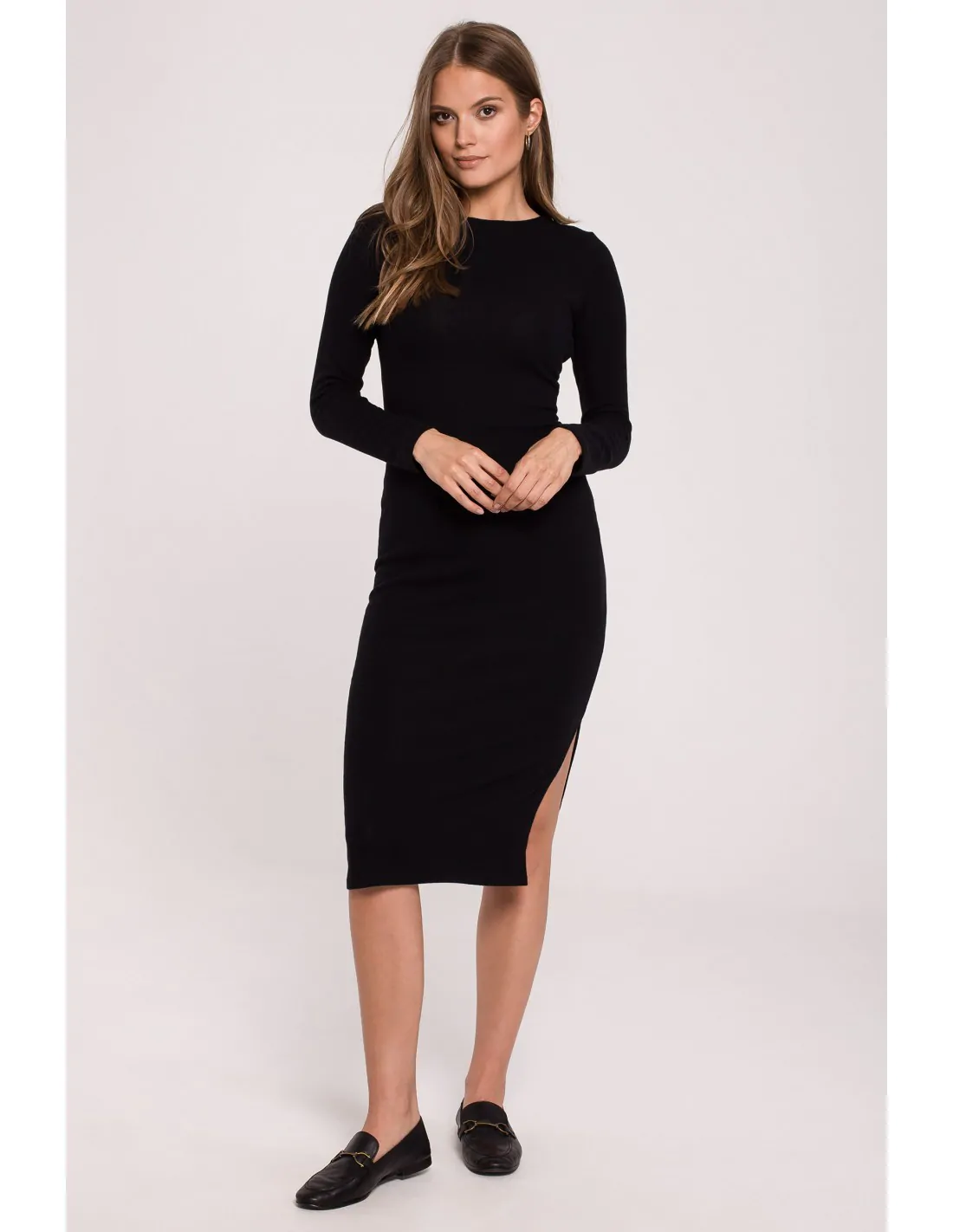 CM6269 Sukienka sweterkowa z przeplotem na plecach - czarna