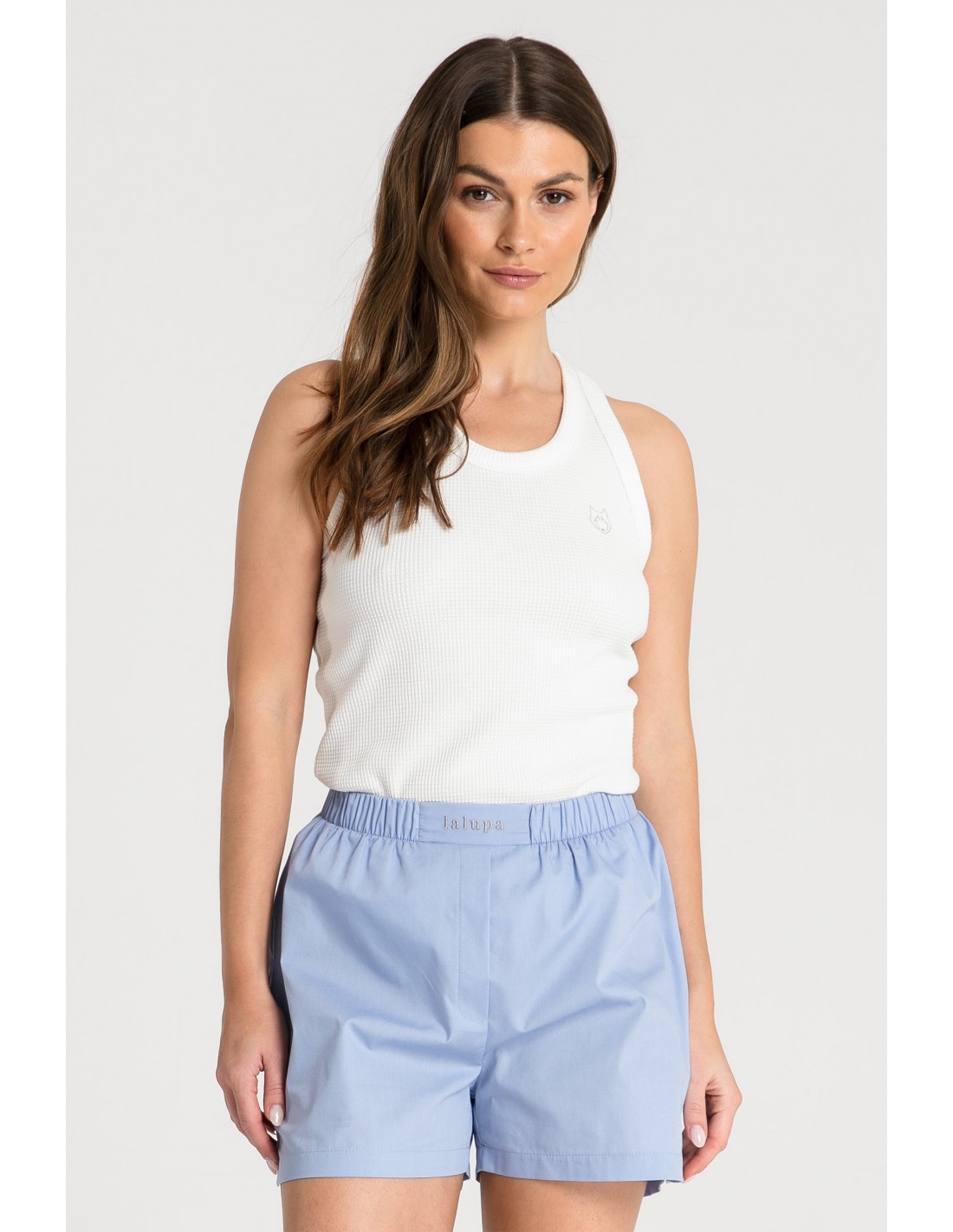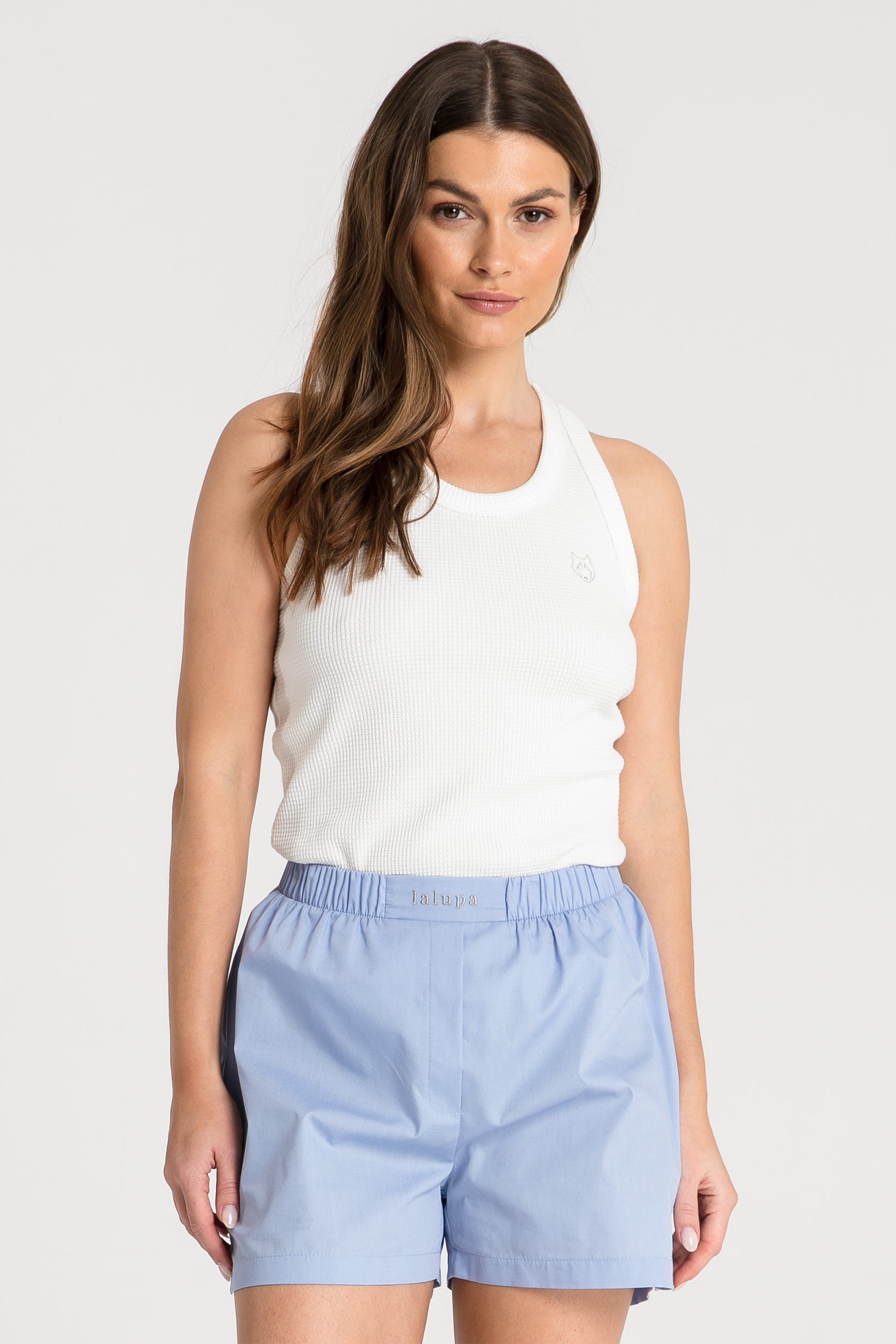 Urocza bokserka, którą wybierzesz do spodni lub szortów od piżamy i w ten sposób stworzysz wygodny komplet piżamowy, który pomoże Ci przetrwać jesień i zimę. Sprawdzi się także jako warstwa pod bluzę lub sweter. Została wykonana z dzianiny typu wafelek, która posiada ciekawą strukturę. Biała bokserka na wysokości lewej piersi posiada minimalistyczny haft, który wyróżnia ten model spośród innych. Zestaw ten model z szortami lub dresowymi spodniami i ciesz się ze stylowego wyglądu zawsze wtedy, kiedy tego potrzebujesz. Ten produkt powstał w Polsce.