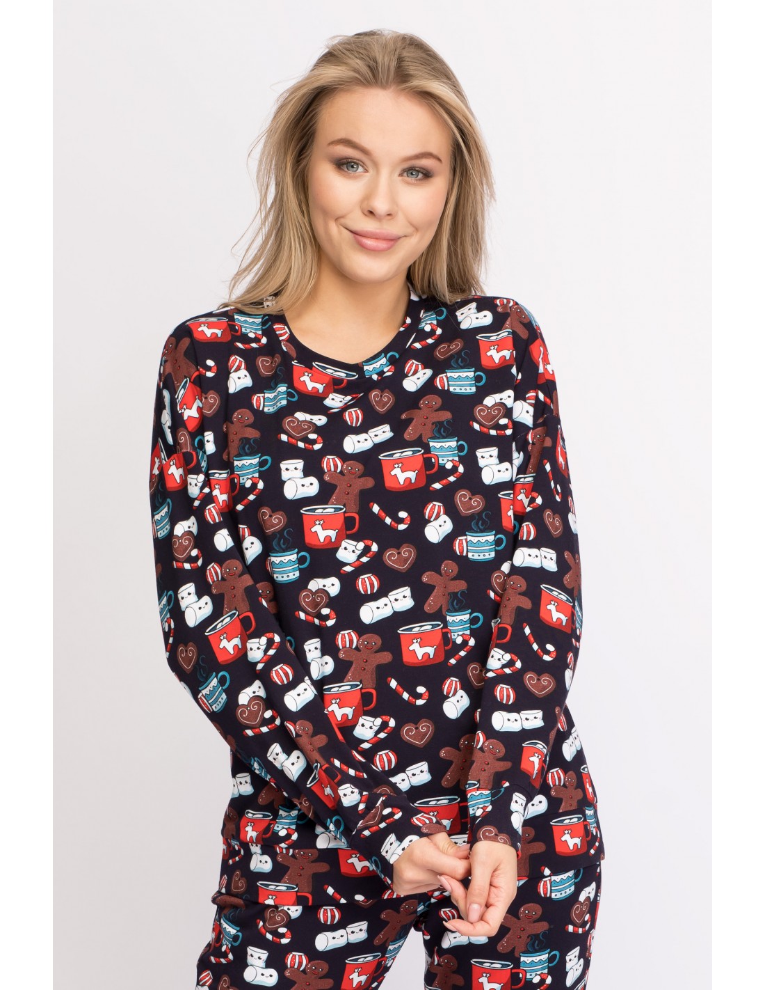 Koniec roku i i wyjątkowy świąteczny czas, który mu towarzyszy to nie tylko liczne okazje na wyjścia i imprezy, ale także czas odpoczynku, relaksu i tym samym czas na wyjątkową piżamę w zimowo-świątecznym stylu. Wyjątkową bo wykonaną ze 100% bawełny, oddychającej i przyjemnej dla skóry, a przy tym z wyjątkowym nadrukiem, zabawnym i przywołującym na myśl przyjemne chwile z dzieciństwa kiedy święta były beztroskim czasem, w przyjemnym otoczeniu choinki, łakoci i prezentów. Bawełniana bluzka od piżamy z nadrukiem w ciasteczkowe ludziki z długimi rękawami, o niedopasowanym fasonie to komfort, swoboda i przyjemność dla ciała i oka. Ten produkt został uszyty w Polsce.