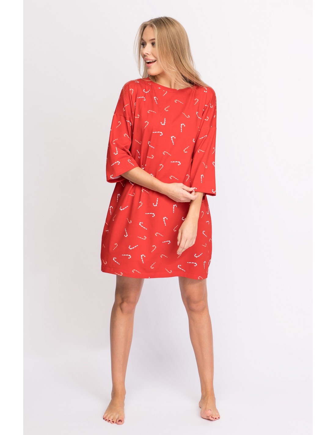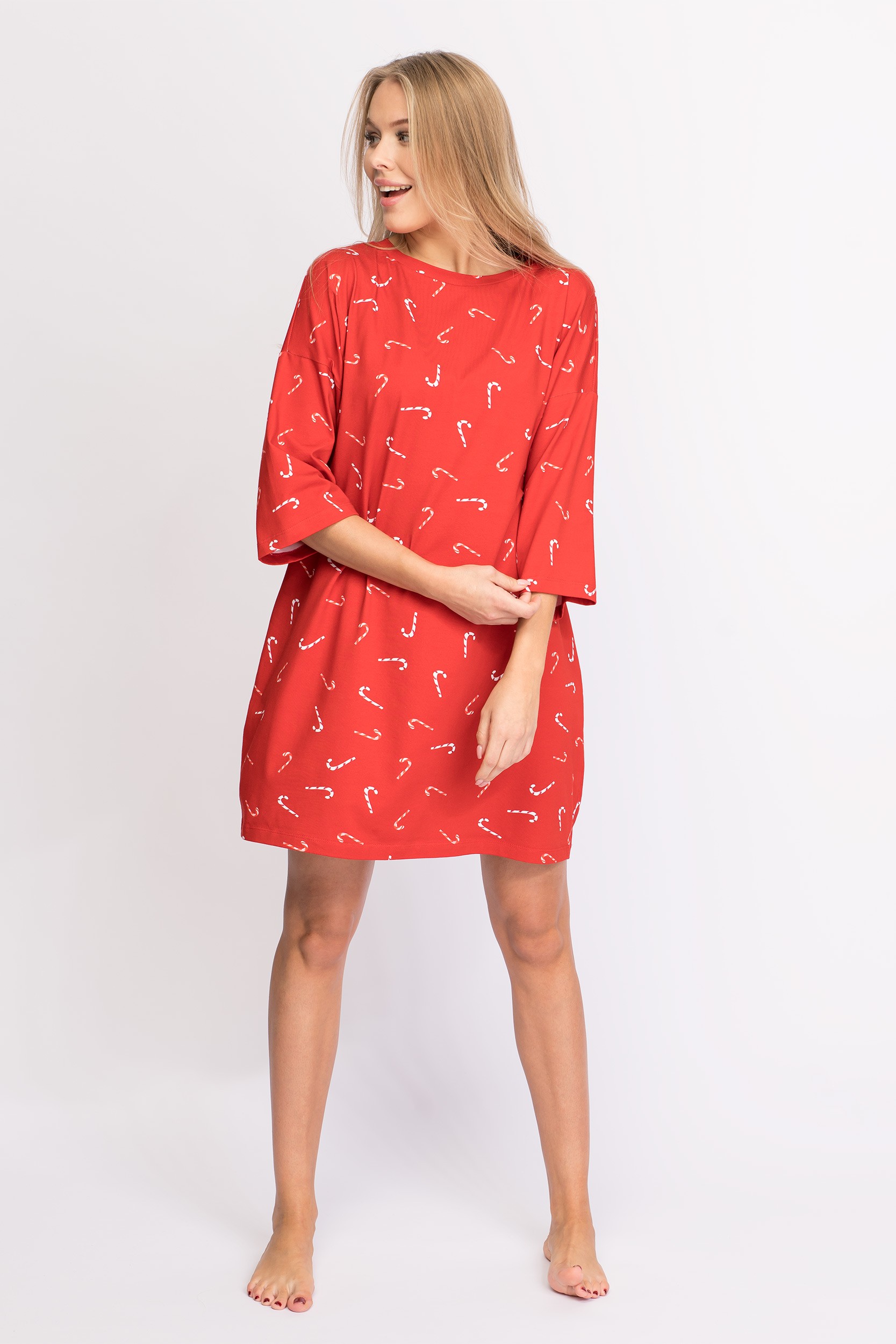 Zostań nocnym markiem tej zimy i oczekuj na nadchodzące święta i Mikołaja w uroczej, miękkiej bawełnianej koszuli nocnej z rękawami długości trzy czwarte i nadrukiem zimowo-świątecznym w lizaki w iście świątecznych kolorach. To nie tylko wygodna propozycja dla fanek piżam w tej właśnie formie, ale i ciekawa alternatywa góry od piżamy, czy domowej tuniki, którą założysz do legginsów, czy kolarek snując się w domowym otoczeniu, pakując prezenty dla najbliższych, czy spędzając czas z przyjaciółmi w domowej atmosferze. Idealna do selfie przy choince gdy nadejdzie wyjątkowy świąteczny czas. Ten produkt został uszyty w Polsce.