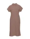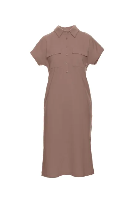 CM6490 Sukienka safari z kołnierzykiem i kieszeniami na przodzie - kakaowa