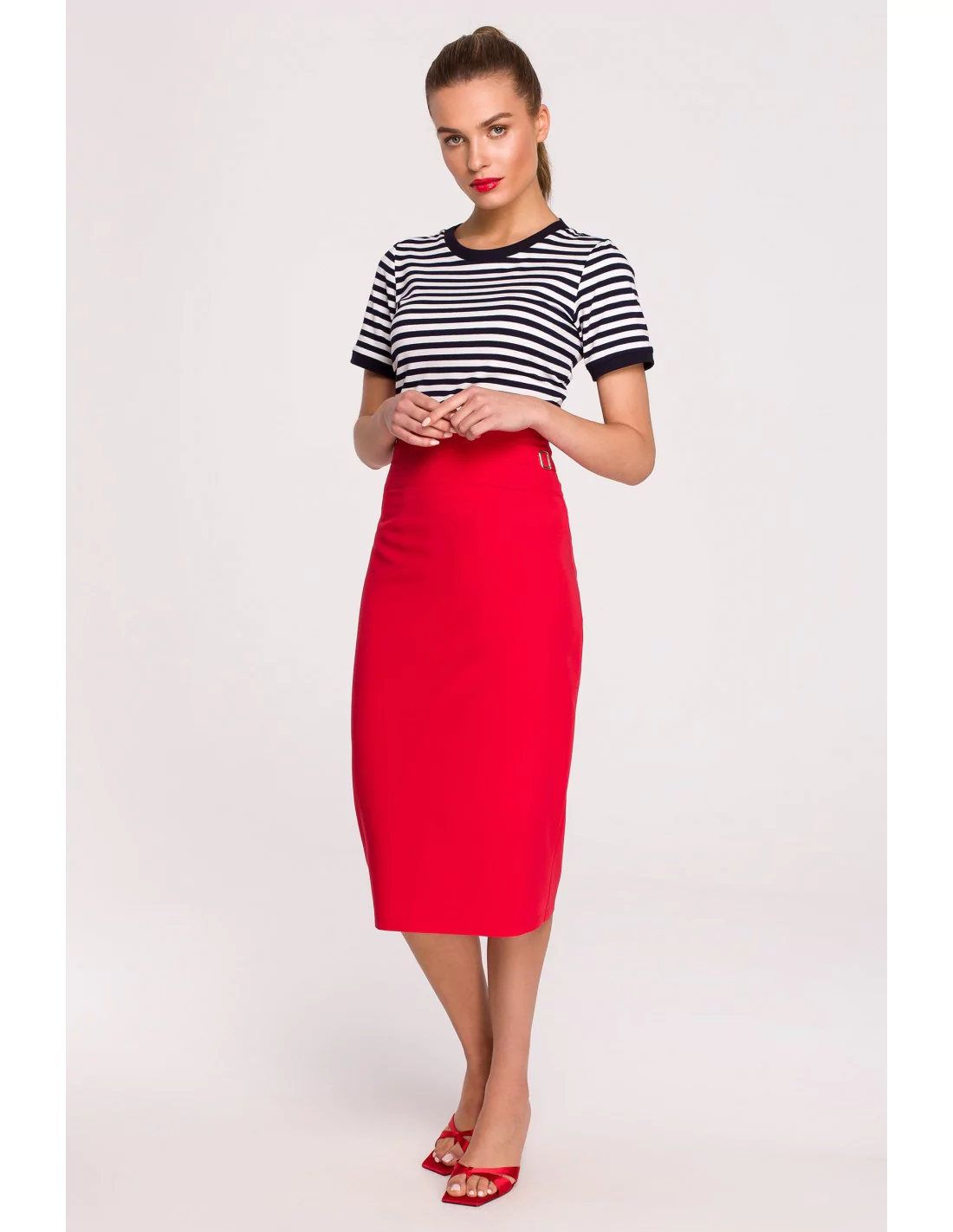 CM6504 Klasyczna spódnica ołówkowa midi - czerwona