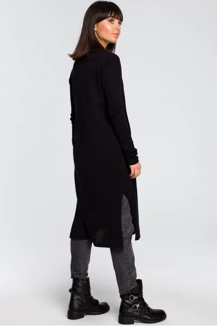 Elegancka dopasowana midi sukienka z łańcuszkiem na plecach - czarna