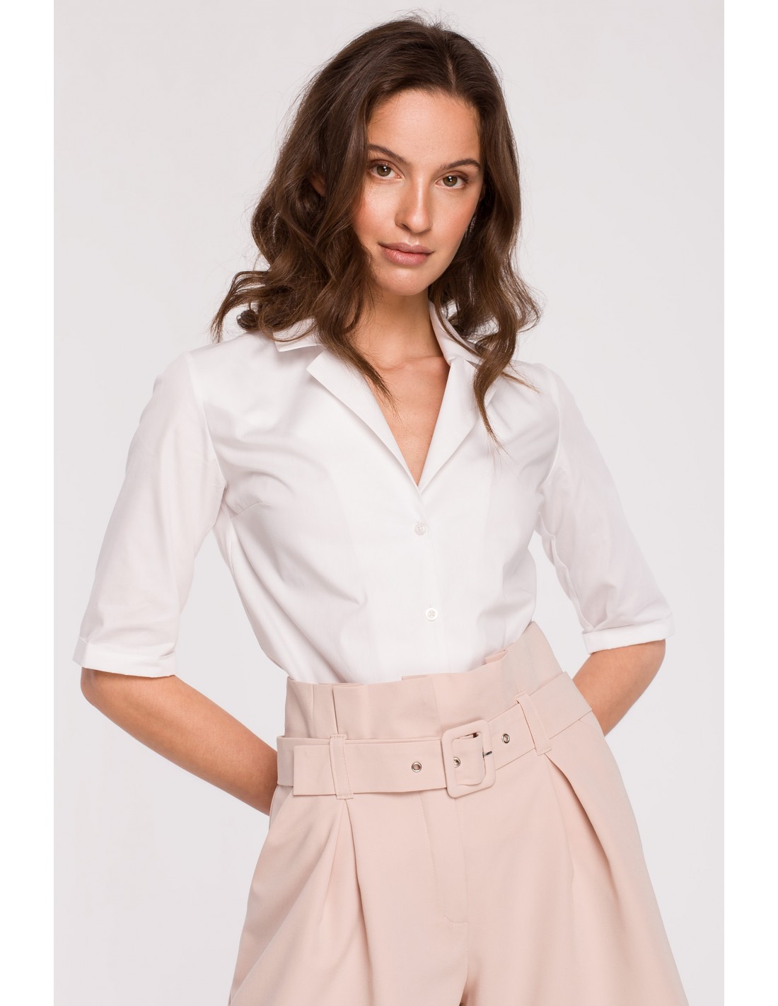 CM6546 Klasyczna koszula z dekoltem i kołnierzem - biała