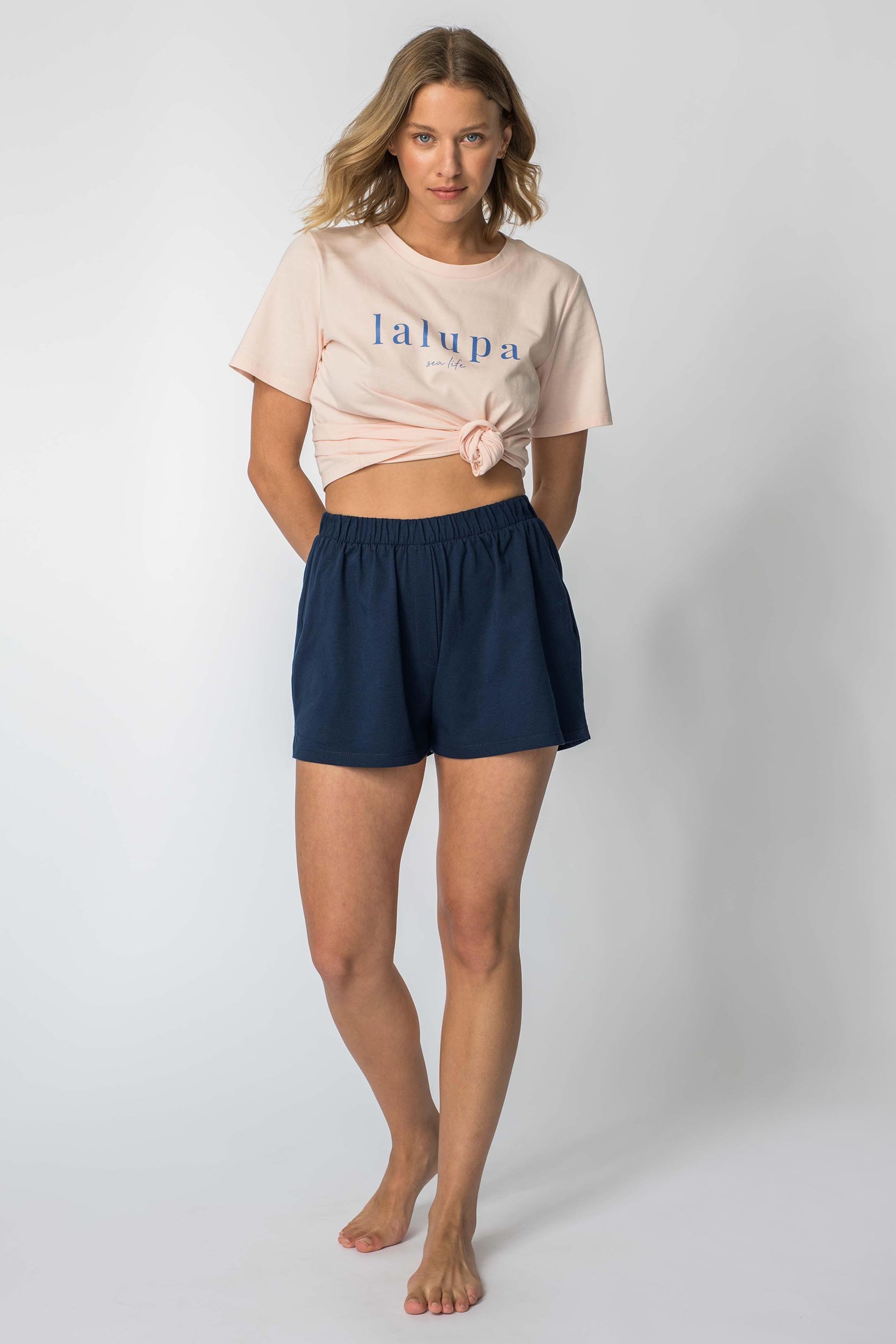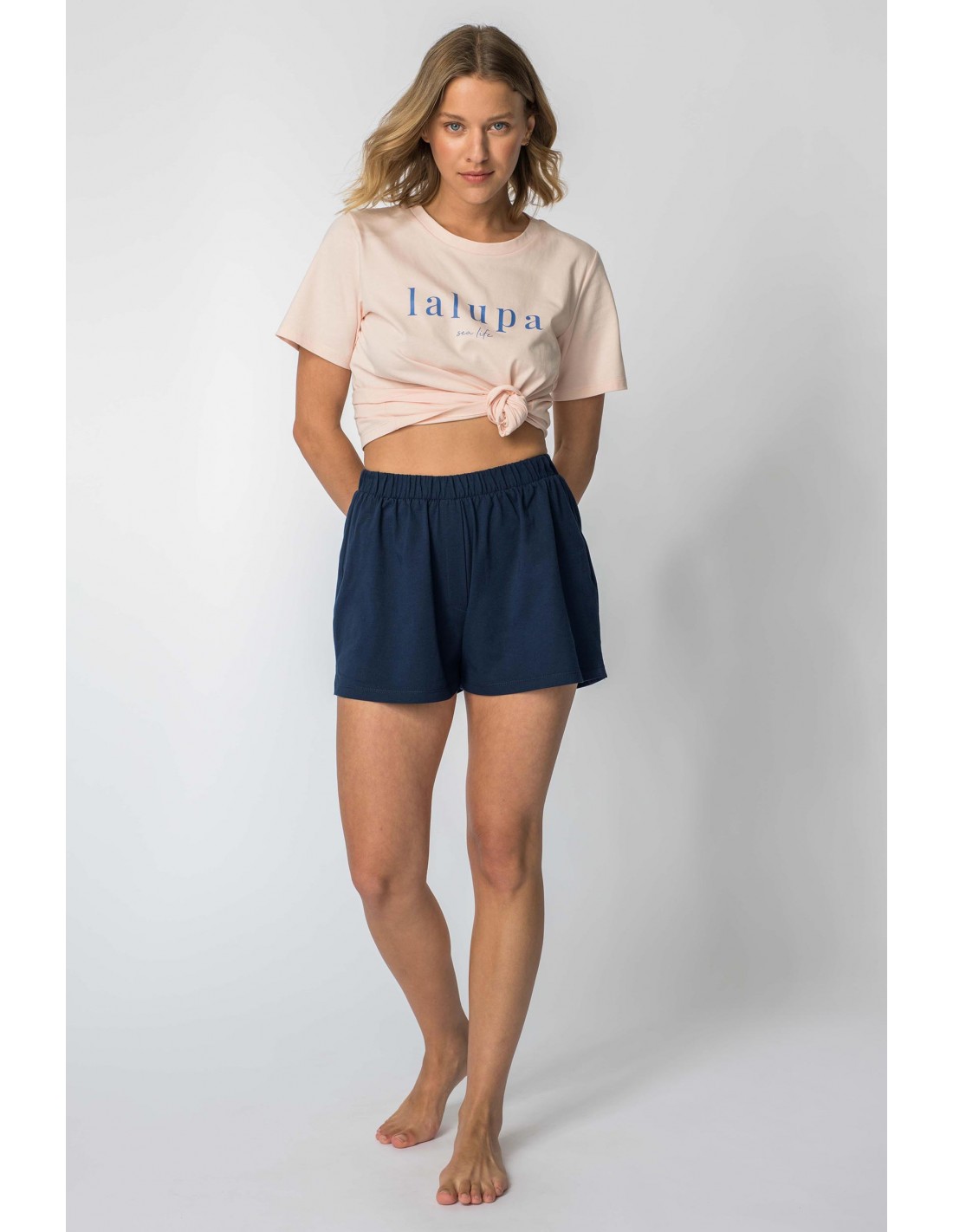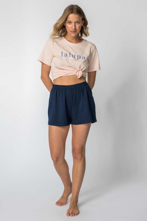 Granatowe bawełniane szorty z rozporkami to model, który sprawdzi się zarówno na co dzień jako odzież typu homewear, podczas jazdy na rowerze czy spaceru z dzieckiem, jak i jako wygodny element piżamy. Szorty mają boczne kieszenie oraz wszytą w pasie gumkę, dzięki której dopasowują się do Twoich kształtów. Ich krój nie krępuje ruchów, a dodatkowo podkreśla pośladki. Lekka, bawełniana dzianina, z której zostały wykonane jest niezwykle miękka i przyjemna w dotyku oraz dla ciała, co daje poczucie niebywałego komfortu, nawet podczas snu. Niekwestionowaną ozdobą tego modelu są niewielkie rozporki po bokach nogawek, nadające subtelnego uroku oraz oryginalnego charakteru. Szorty wyprodukowane w Polsce.
