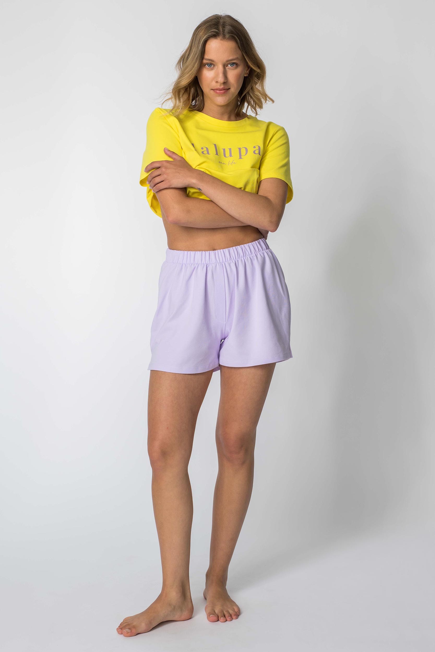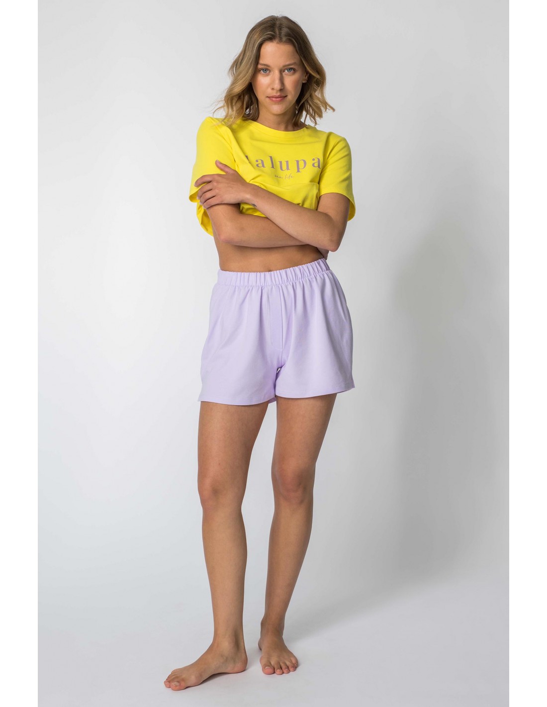 Fioletowe bawełniane szorty z rozporkami to model, który sprawdzi się zarówno na co dzień jako odzież typu homewear, podczas jazdy na rowerze czy spaceru z dzieckiem, jak i jako wygodny element piżamy. Szorty mają boczne kieszenie oraz wszytą w pasie gumkę, dzięki której dopasowują się do Twoich kształtów. Ich krój nie krępuje ruchów, a dodatkowo podkreśla pośladki. Lekka, bawełniana dzianina, z której zostały wykonane jest niezwykle miękka i przyjemna w dotyku oraz dla ciała, co daje poczucie nieograniczonego komfortu, nawet podczas snu. Delikatną ozdobą tego modelu są niewielkie rozporki po bokach nogawek, nadające subtelnego uroku oraz oryginalnego charakteru. Szorty wyprodukowane w Polsce.