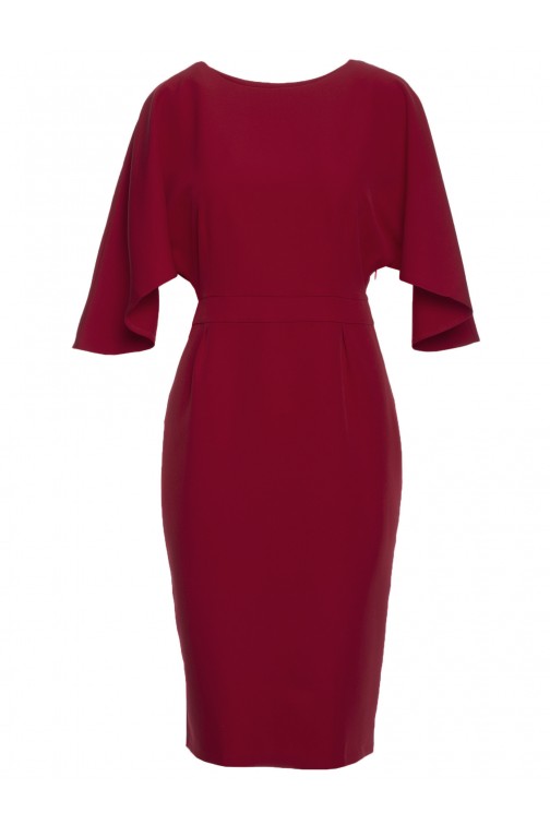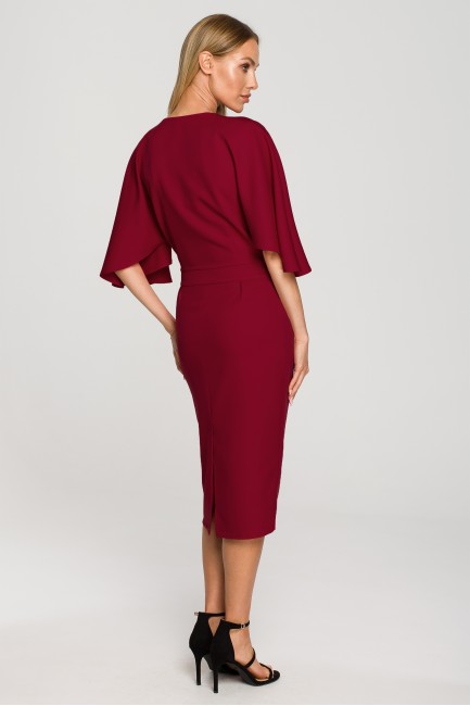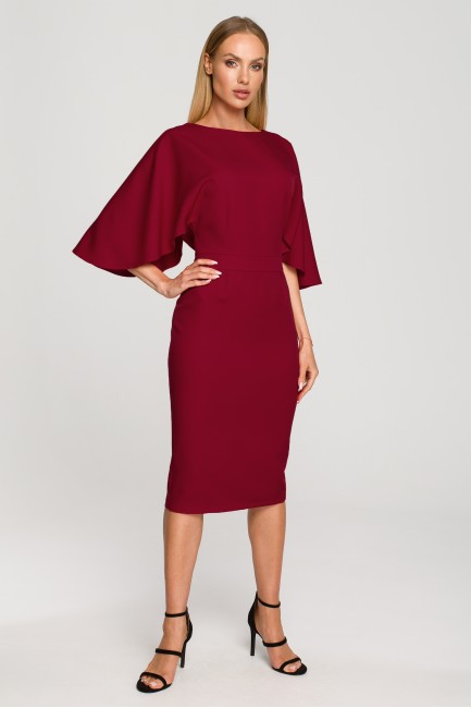CM6844 Sukienka midi z szerokimi rękawami - bordowa