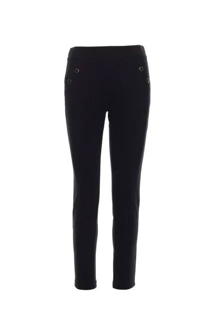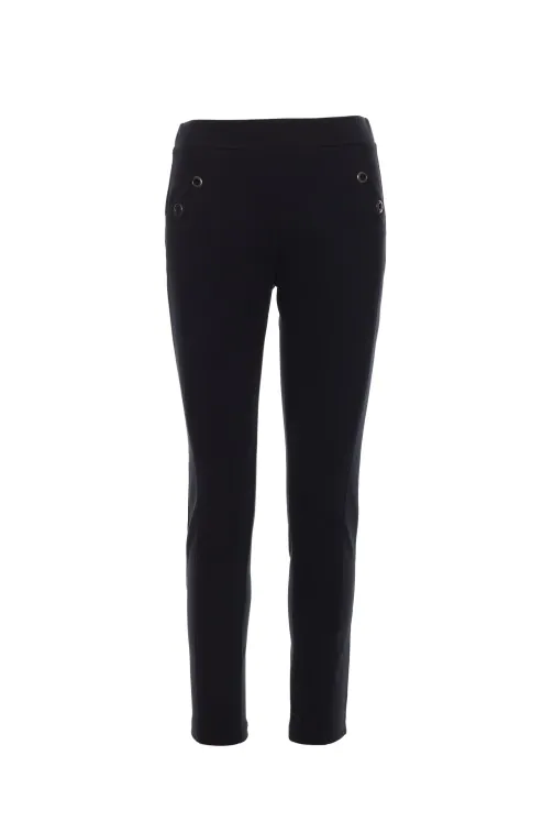 Wygodne, a zarazem bardzo stylowe i nietuzinkowe spodnie z dzianiny dresowej. Model ze średnim stanem, o dopasowanym kroju z gumą w tylnej części pasa. Metalowe oczka na kieszeniach dodają wyjątkowego charakteru i idealnie komponują się z metalowym zamkiem w bluzie, którą znajdziesz w naszej kolekcji. Wykonane z przyjemnej w dotyku dzianiny bawełnianej z dodatkiem elastanu, dzięki któremu bawełna zyskuje na elastyczności, a spodnie perfekcyjnie układają się na sylwetce. Pionowe przeszycia dodatkowo ją modelują. Świetnie sprawdzają się nie tylko w sportowej wersji ze sneakersami, ale i bardziej casualowej z mokasynami w duecie. Czarne spodnie damskie wyprodukowaliśmy w Polsce.