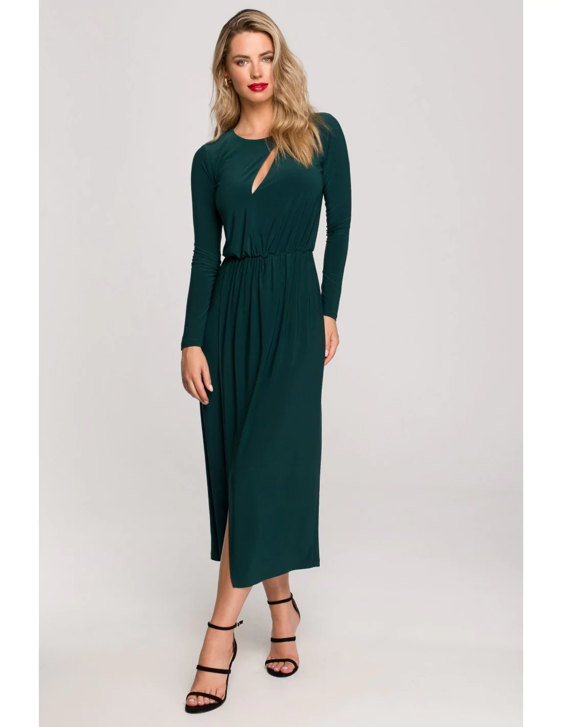 CM6896 Sukienka maxi z rozcięciem w dekolcie - butelkowa zieleń