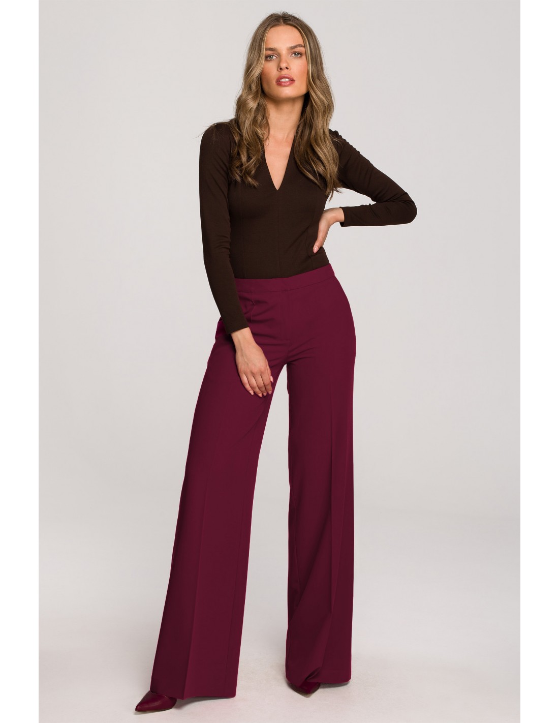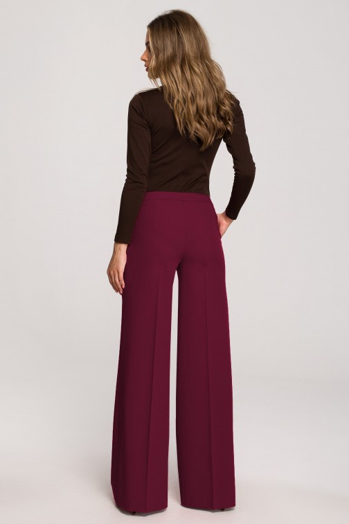 CM6909 Spodnie z szerokimi nogawkami - bordowe