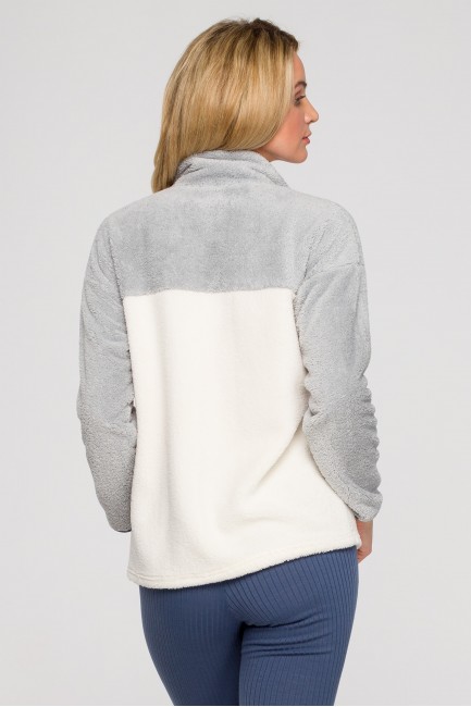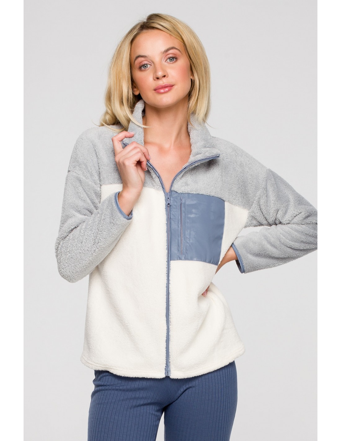 Pluszowa bluza z zamkiem to bardzo praktyczny element domowej garderoby, ale i wygodna propozycja na wyjścia. Wykonana z miłej w dotyku, ciepłej dzianiny futerkowej sprawi, że zaraz po jej założeniu poczujesz przyjemne otulenie. Wielokolorowa bluza jest bardzo oryginalna i wyrazista, więc zestaw ją z jednobarwnym dołem. Na wysokości biustu, po jednej stronie przodu umieszczona została kwadratowa wstawka z połyskującego materiału, a w niej ukryta kieszonka na zamek - będziesz mogła schować swoje drobiazgi. Masz do wyboru aż 4 wersje kolorystyczne - na którą się zdecydujesz? Pluszowa bluza na zamek wyprodukowana została w Polsce.