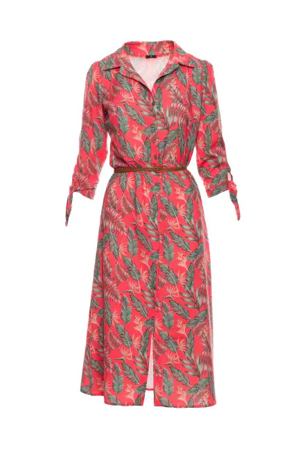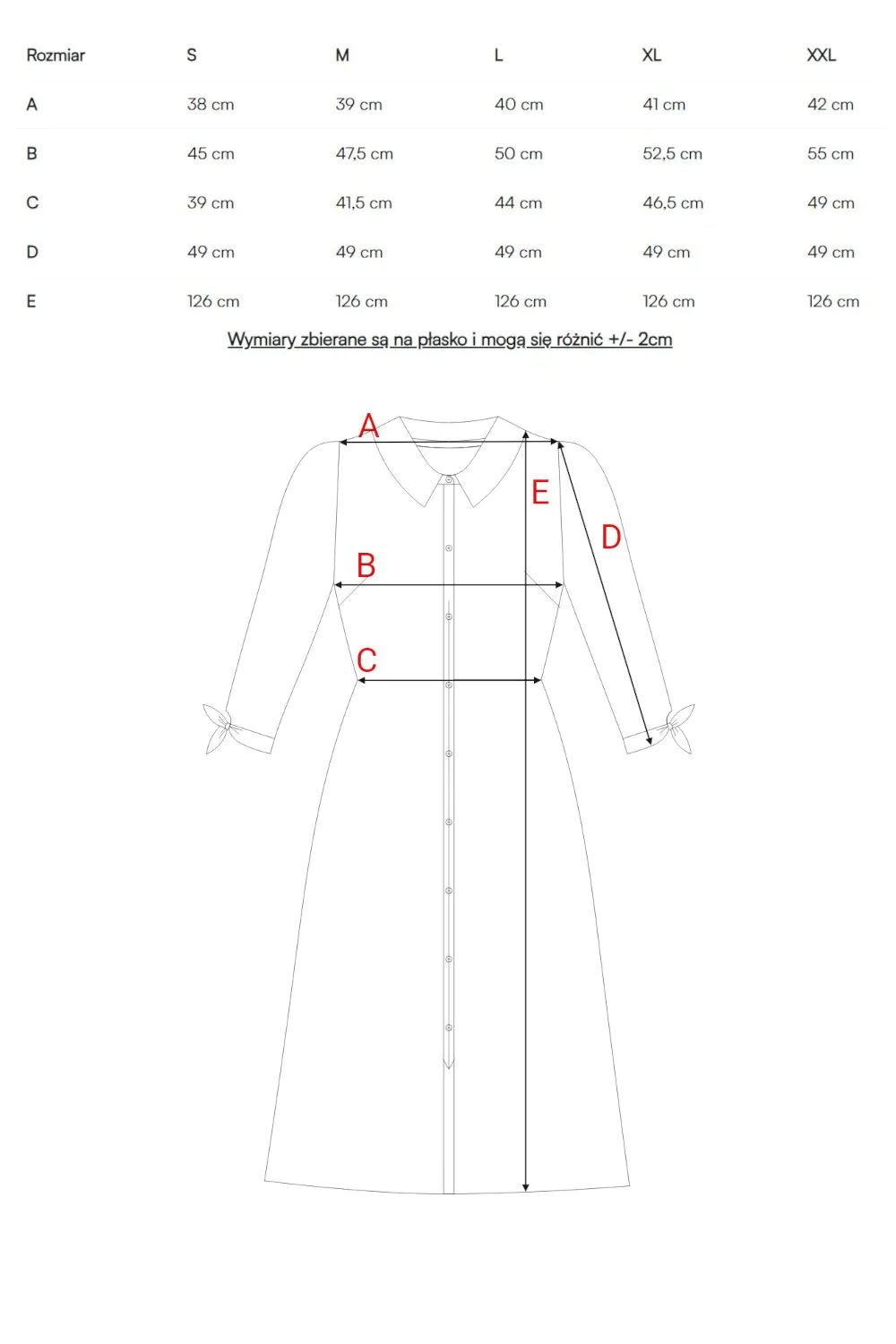 Zwiewna sukienka na guziki z motywem liści to niezwykle kobieca propozycja na wiosenno–letni sezon. Sukienka zapinana jest na guziki i posiada kołnierzyk, który dodaje jej nutki elegancji. Rękawy o długości 3/4 z wiązaniem są bardzo kobiece i dodają sukience romantycznego klimatu. W zestawie z sukienką otrzymasz pasek z eko–skóry z klamrą, który pozwoli na podkreślenie talii, dzięki czemu sukienka będzie jeszcze bardziej dopasowana do Twojej sylwetki. Ta zwiewna sukienka na guziki to idealny wybór na letnie spacery, kolacje na świeżym powietrzu czy romantyczne randki. Nie przegap okazji, aby poczuć się wyjątkowo i zawsze modnie. Wyprodukowana w Polsce.