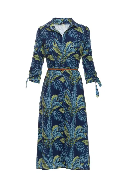 Zwiewna sukienka na guziki z motywem liści to niezwykle kobieca propozycja na wiosenno–letni sezon. Sukienka zapinana jest na guziki i posiada kołnierzyk, który dodaje jej nutki elegancji. Rękawy o długości 3/4 z wiązaniem są bardzo kobiece i dodają sukience romantycznego klimatu. W zestawie z sukienką otrzymasz pasek z eko–skóry z klamrą, który pozwoli na podkreślenie talii, dzięki czemu sukienka będzie jeszcze bardziej dopasowana do Twojej sylwetki. Ta zwiewna sukienka na guziki to idealny wybór na letnie spacery, kolacje na świeżym powietrzu czy romantyczne randki. Nie przegap okazji, aby poczuć się wyjątkowo i zawsze modnie. Wyprodukowana w Polsce.