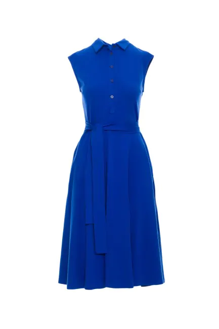 CM7248 Sukienka bawełniana z rozkloszowanym dołem - chabrowa