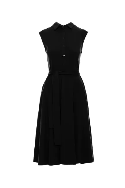 CM7248 Sukienka bawełniana z rozkloszowanym dołem - czarna