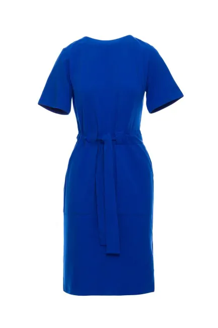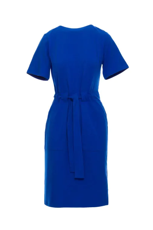 CM7250 Bawełniana sukienka z paskiem - chabrowa