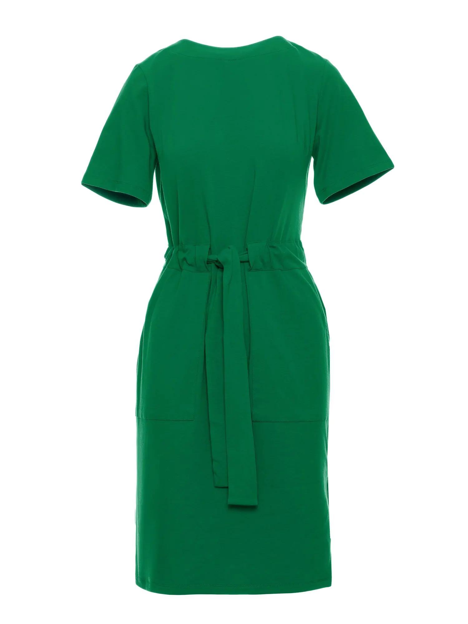 CM7250 Bawełniana sukienka z paskiem - soczysto-zielona