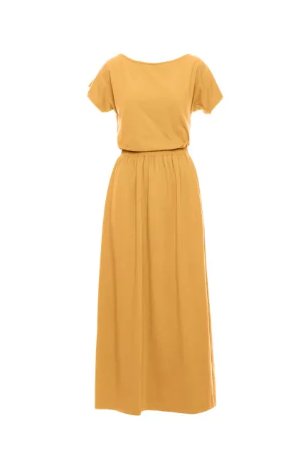 CM7251 Sukienka maxi z gumką w talii - miodowa