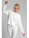 Szeroka bluza o krótszym kroju, wykonana z miękkiej dzianiny dresowej. Szew cięty z tyłu i drobne obszycia są gustownymi detalami, które podkreślają wygląd bluzy, a kaptur stanowi wyróżniający ją element. Dół posiada ozdobną plisę, która współgra z pozostałymi elementami bluzy. Wyprodukowano w Polsce.