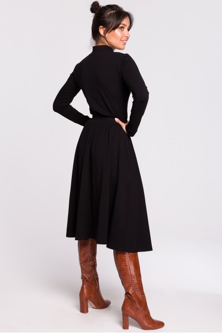 Dopasowana mini spódniczka uszyta jest z miękkiej, prążkowanej tkaniny, która rozciągając się, pięknie podkreśla kobiece kształty. Długość przed kolano pozwala na wyeksponowanie nóg, a prosty fason stanowi bazę pod różne stylizacje. Wyprodukowano w Polsce.