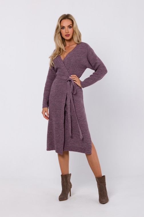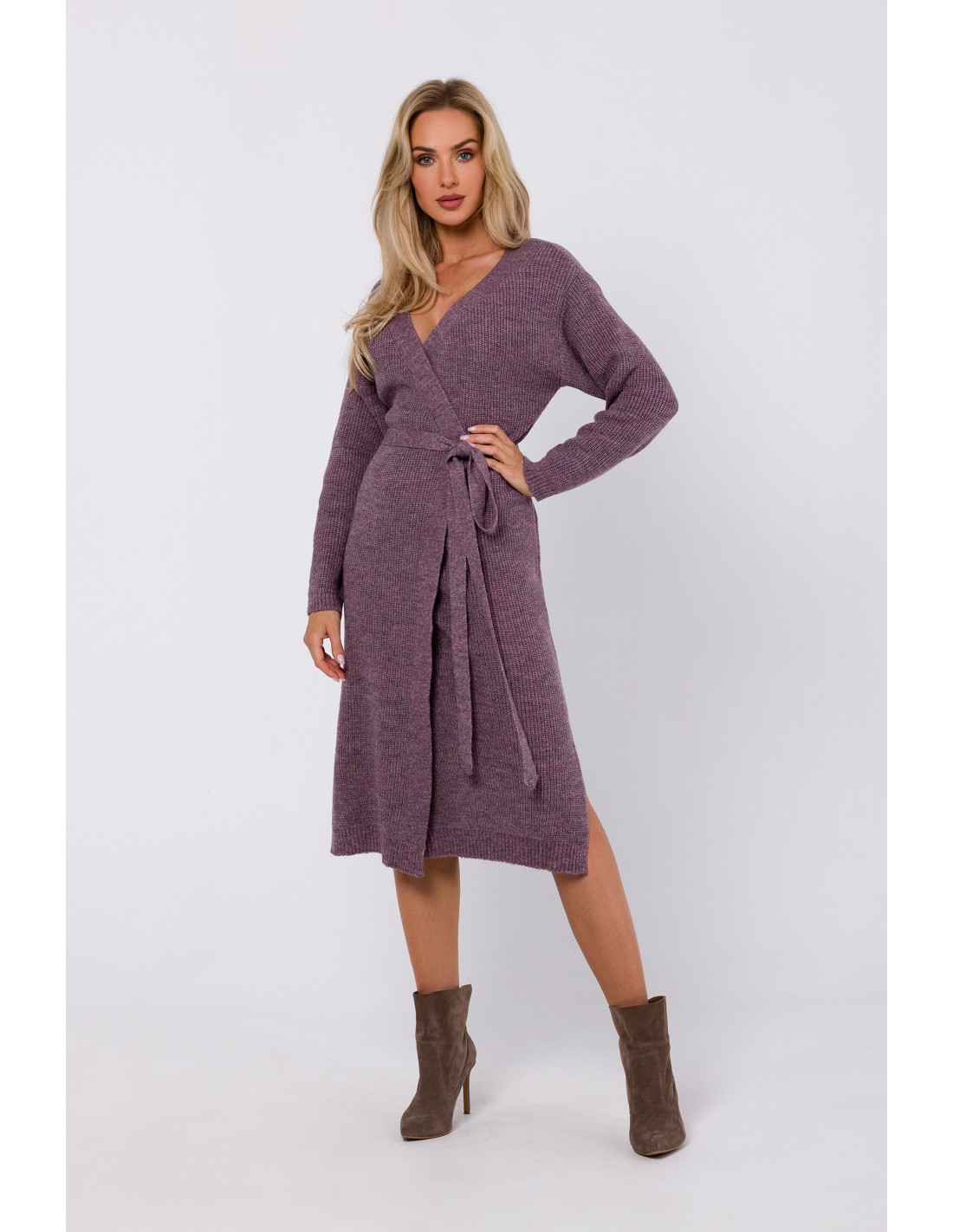 CM7624 Sukienka swetrowa z wiązaniem w talii - wrzosowa