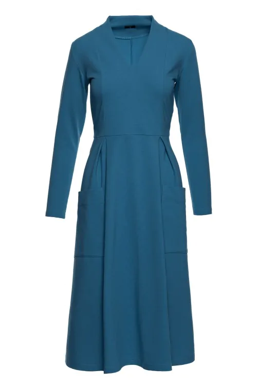CM7651 Sukienka rozkloszowana z dekoltem V - morska