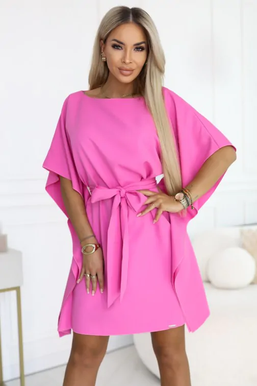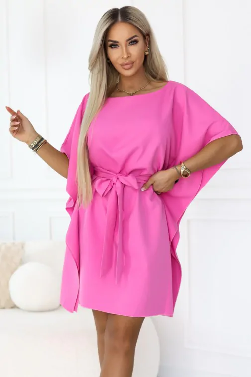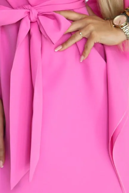 CM7885 Sukienka z wiązaniem w talii - fuksja