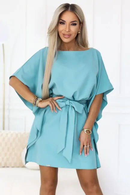 CM7885 Sukienka z wiązaniem w talii - pastelowy turkus