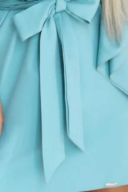 Sukienka z wiązaniem w talii - pastelowy turkus