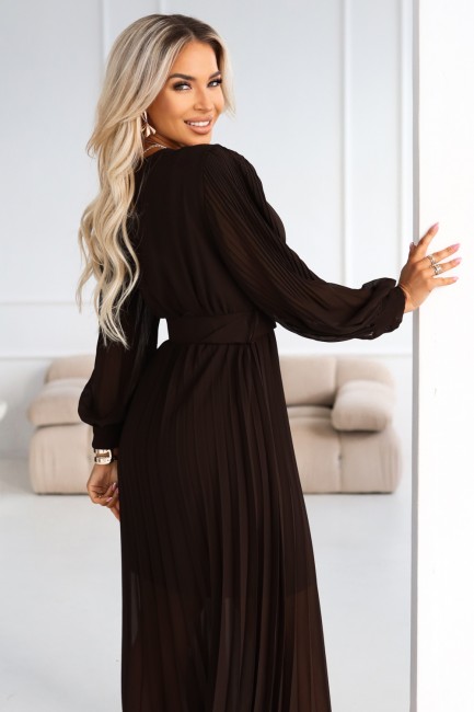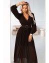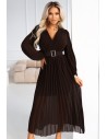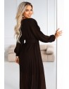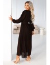 CM7980 Plisowana sukienka z paskiem w talii - czekoladowa