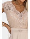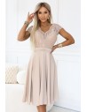 CM7991 Sukienka z koronkowym dekoltem - beżowa