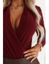 CM7993 Kopertowe body damskie z głębokim dekoltem - bordowe