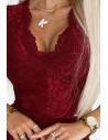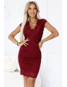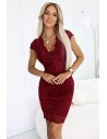 Koronkowa sukienka z krótkim rękawkiem i dekoltem - bordowa