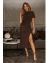 CM8069 Sukienka mini z dekoltem kopertowym - czekoladowa
