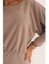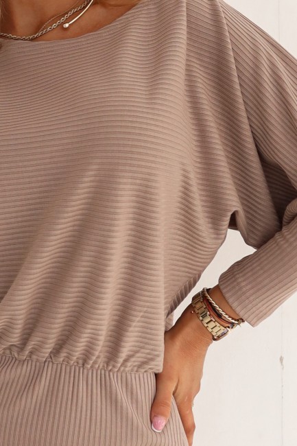 Sukienka w prążki ze ściągaczami w rękawach - mocha mousse