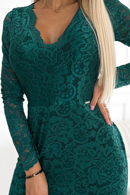 Klasyczna sukienka koronkowa z długim rękawem - zielona