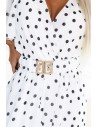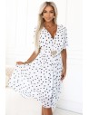 DM0832 Zwiewna sukienka w groszki z kopertowym dekoltem - biała